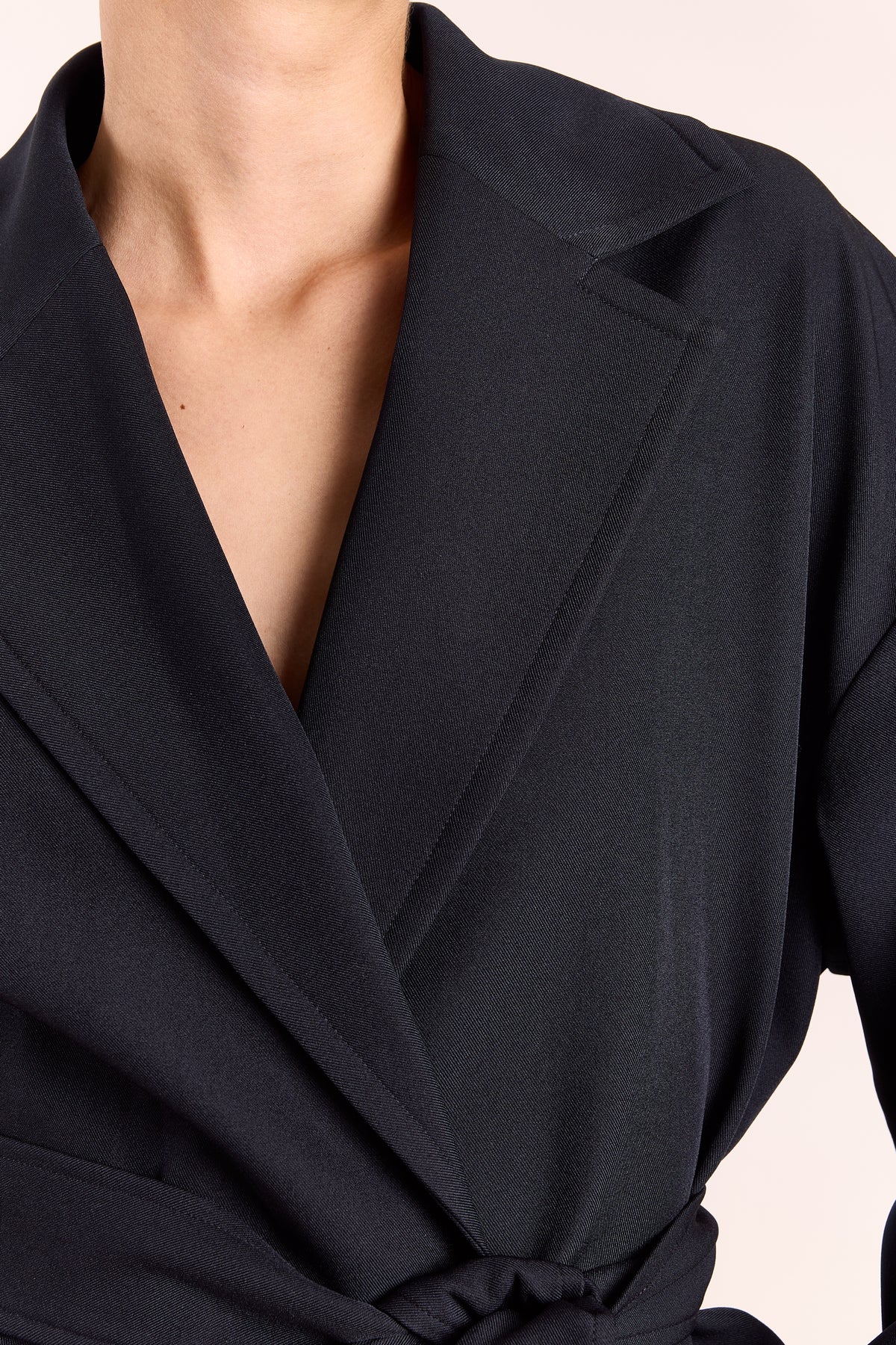 Tara is cut from a soft, mid-weight fabric with a smooth finish. It has a relaxed fit with wide sleeves and a soft collar, and it has an adjustable self-tie belt. Cut to a mid-length, Tara is a fluid jacket that is year-round essential. Model is 175cm and wears size XS/S.