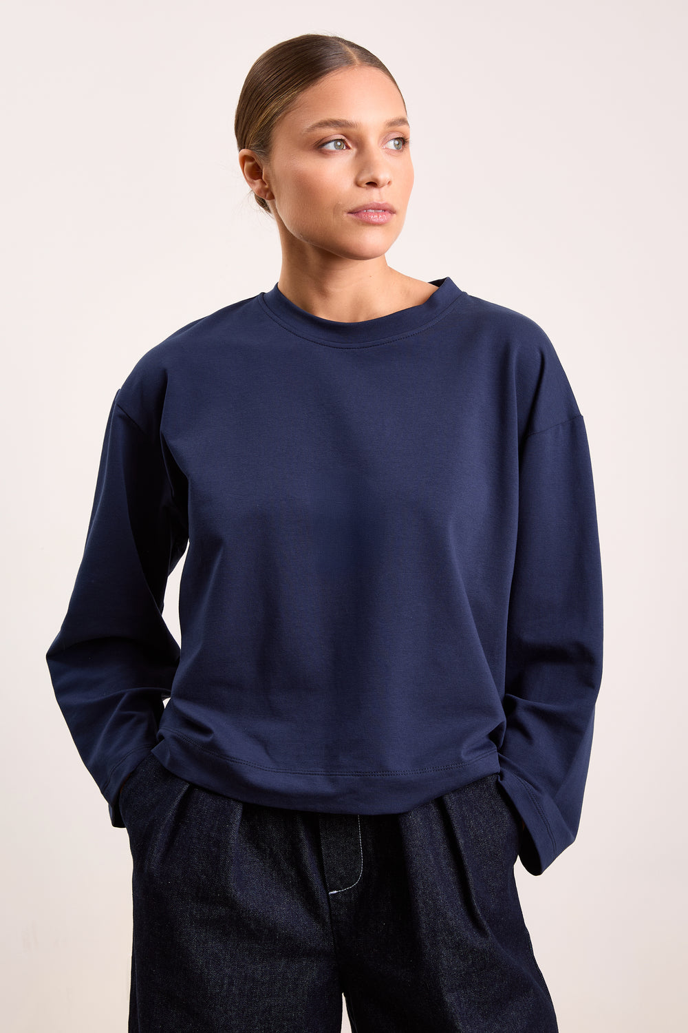 Lilly is a basic style in our collection. With its round neckline and long sleeves it is the perfect layering piece in your Fall closet. Available in Anthracite, Light Grey, Mid Grey, Navy, White and Off White.