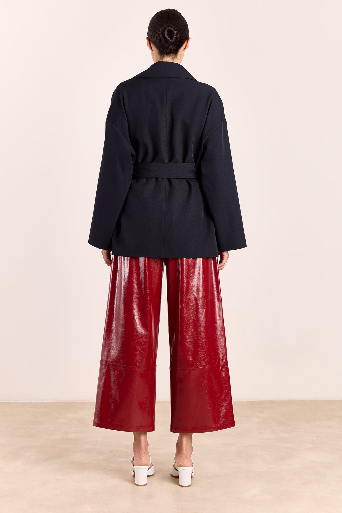 Introducing Tessa: sleek, sculptural, and unapologetically modern,rendered in a rich caramel or burgundy hue with a high-shine finish. Whether worn low-slung or high on the waist, they instantly elevate any ensemble with a glossy punch of polish.Designed to elongate the silhouette and move with ease, they’re your go-to for both boardroom confidence and weekend cool.